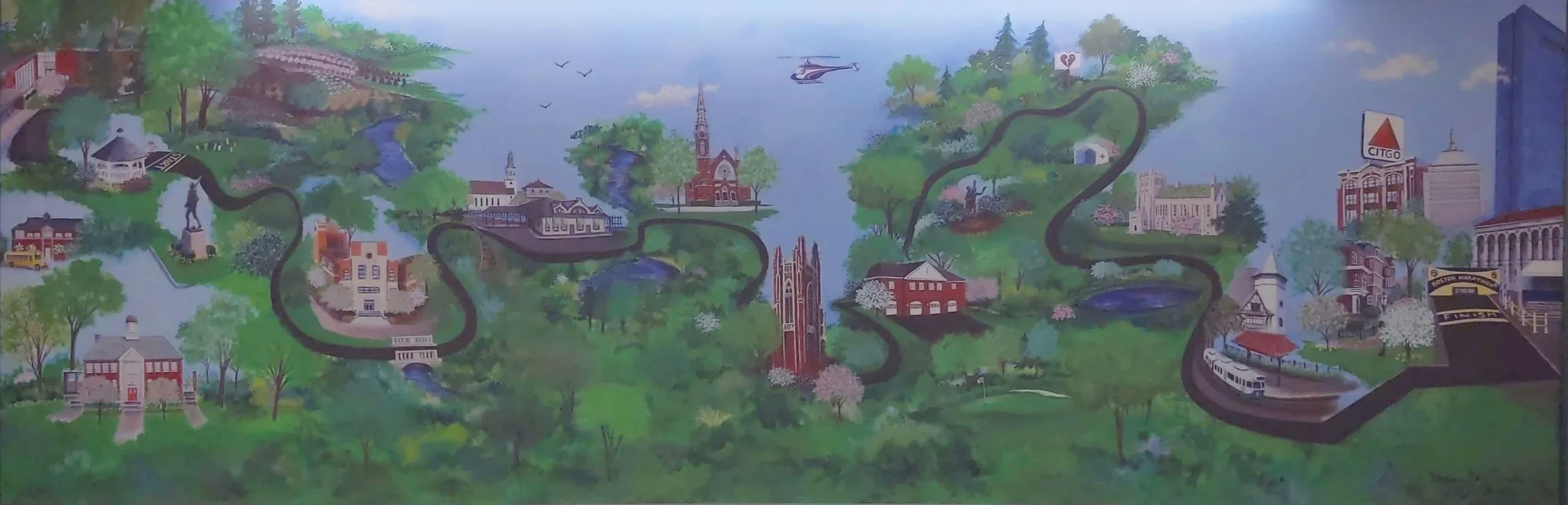 The Newton Free Library is visible from the route. It’s located on Homer Street, which runs parallel to the course and is just before Heartbreak Hill rises. The library was founded in 1865 and has had many interactions over the years. The current building dates from 1992. The city of Newton is a city of villages, and in years gone by, each had its own branch. Today, there are just two branches - in Auburndale and Waban - that are community libraries.